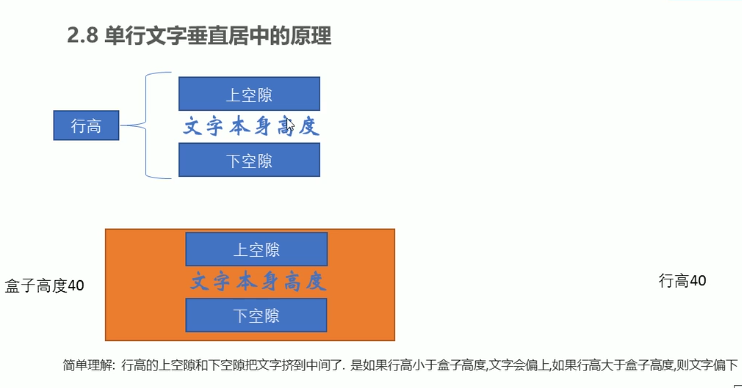 原理:行高=上间距+字高+下间距—————————行高 > 盒高会使得文字偏下